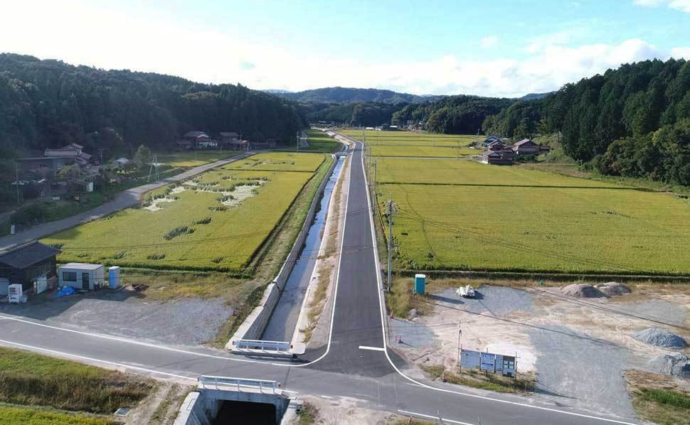 | 工事概要 | 路盤路床工事 下層路盤 3,484㎡ 上層路盤 3,446㎡ アスファルト舗装工事 表層 5,380㎡ 道路付属施設工事 区画線 1,792m 水路・管路工事 大型コンクリート二次製品水路 47m |