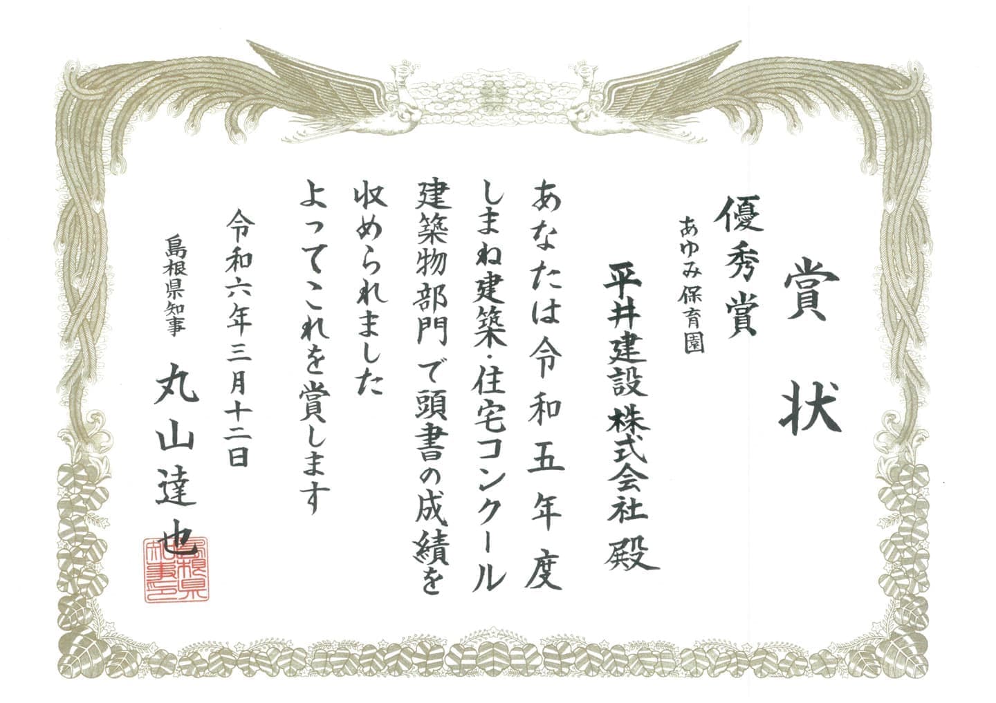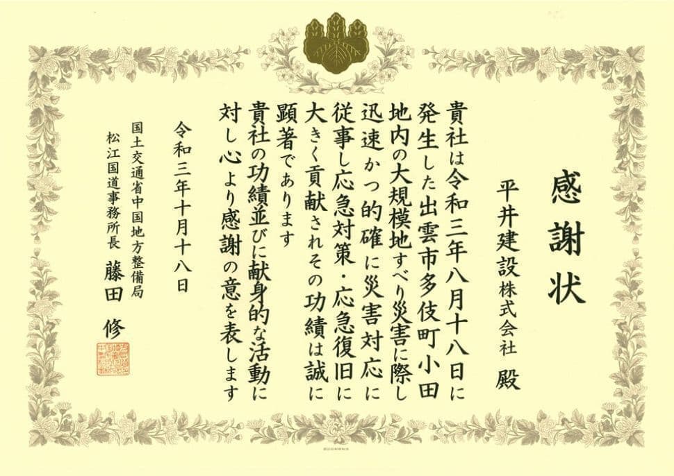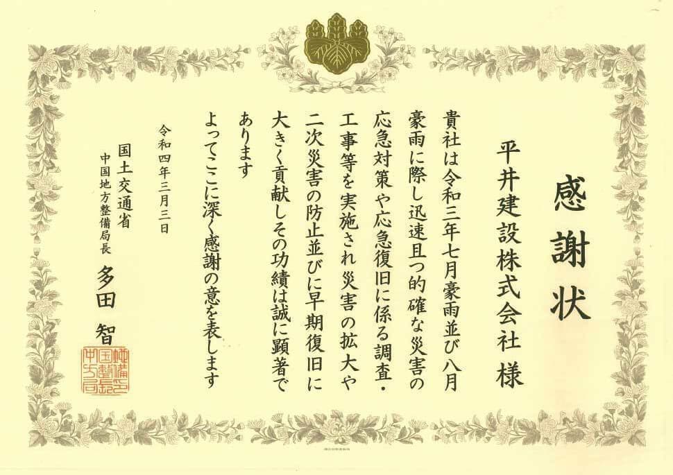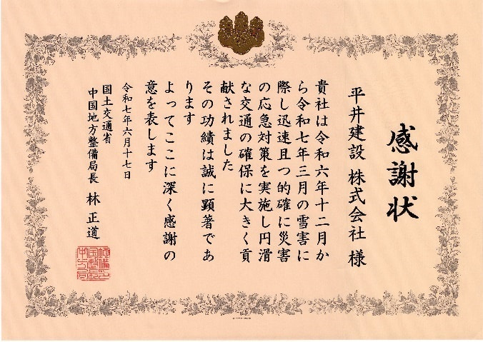 | 表彰者 | 国土交通省中国地方整備局長 |