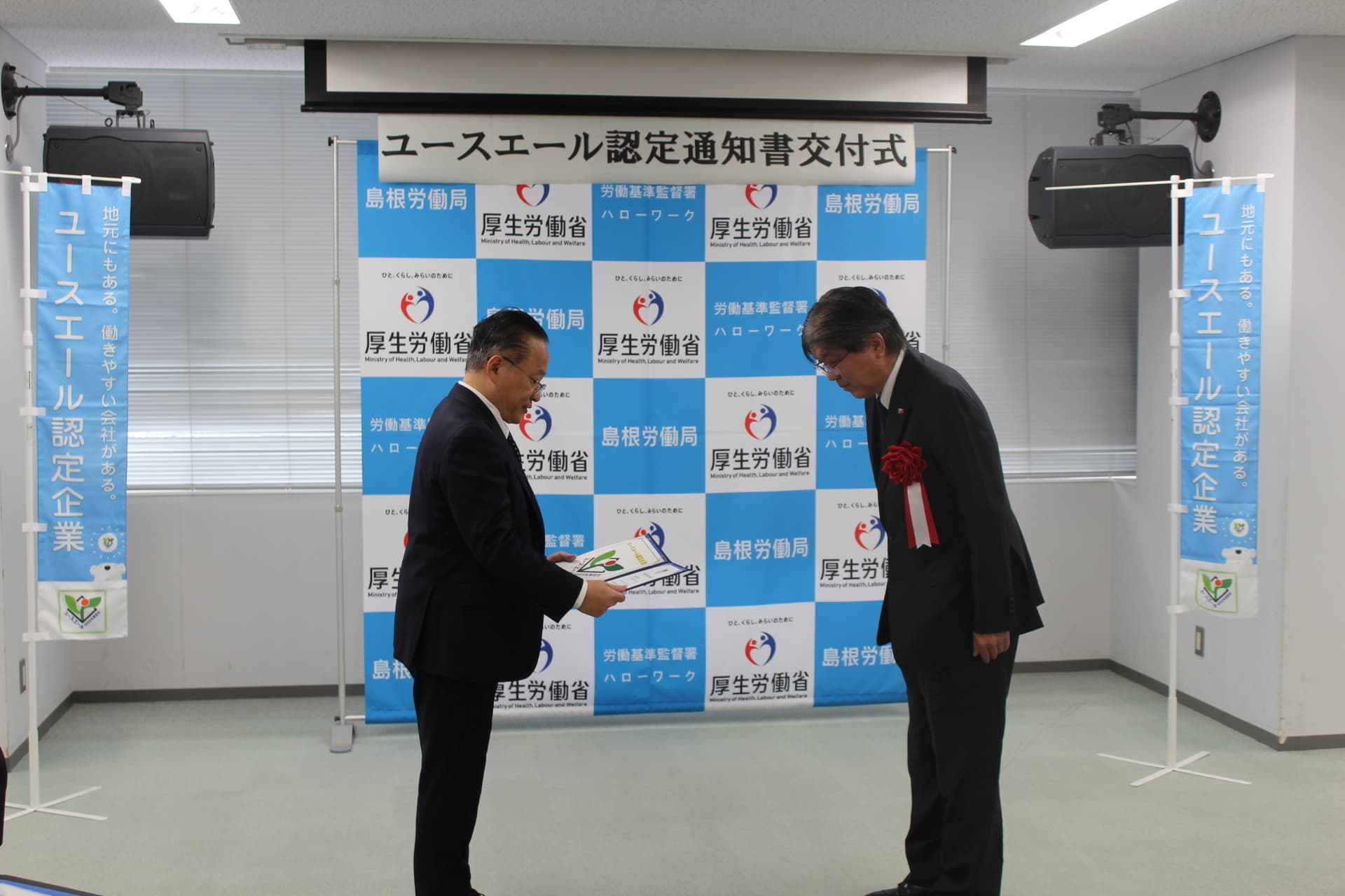 12月3日、島根労働局において厚生労働省が所管する『ユースエール』認定通知書交付式がありました。
