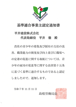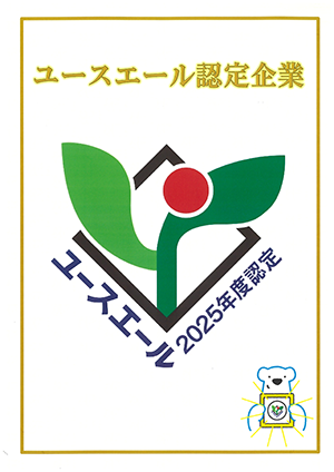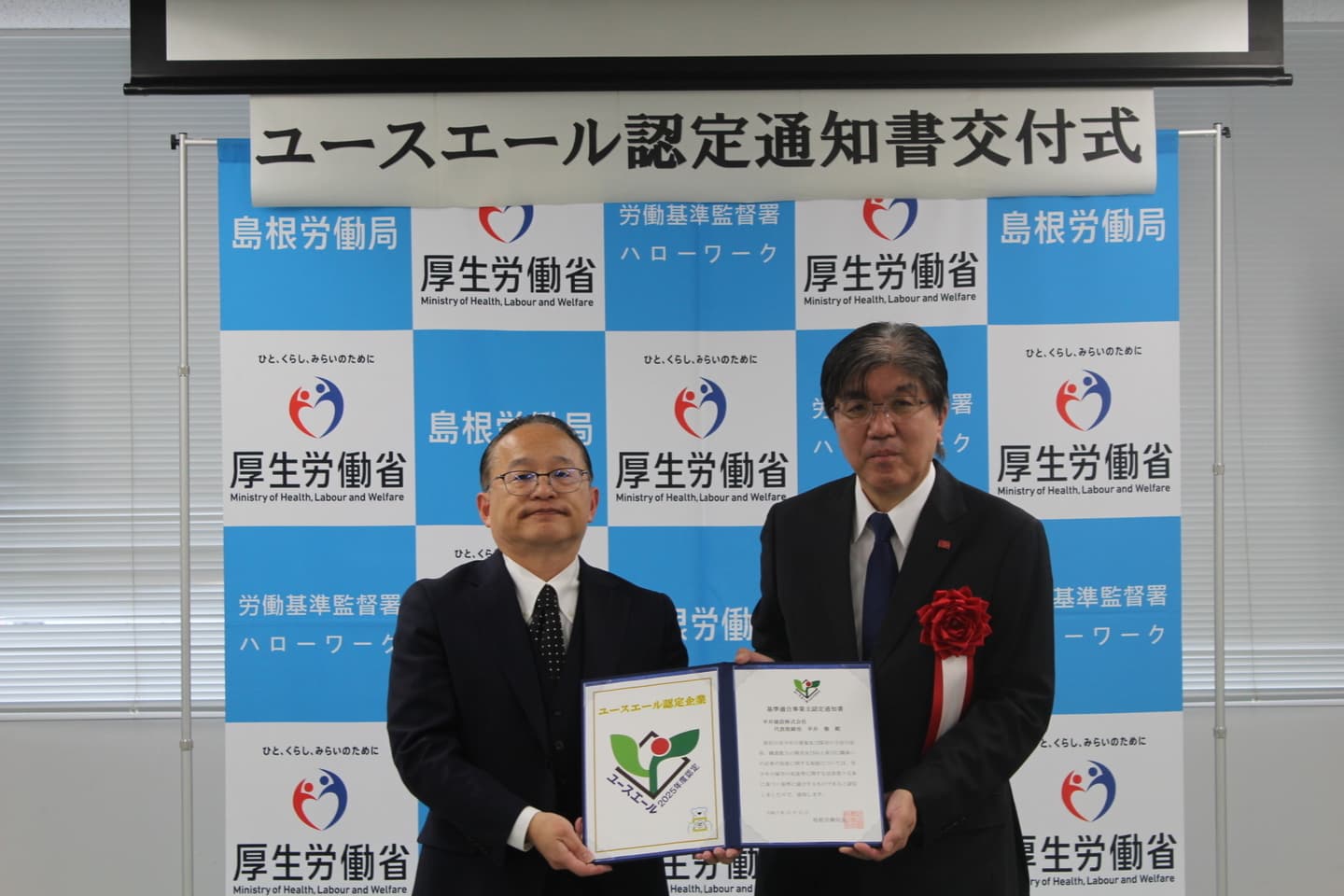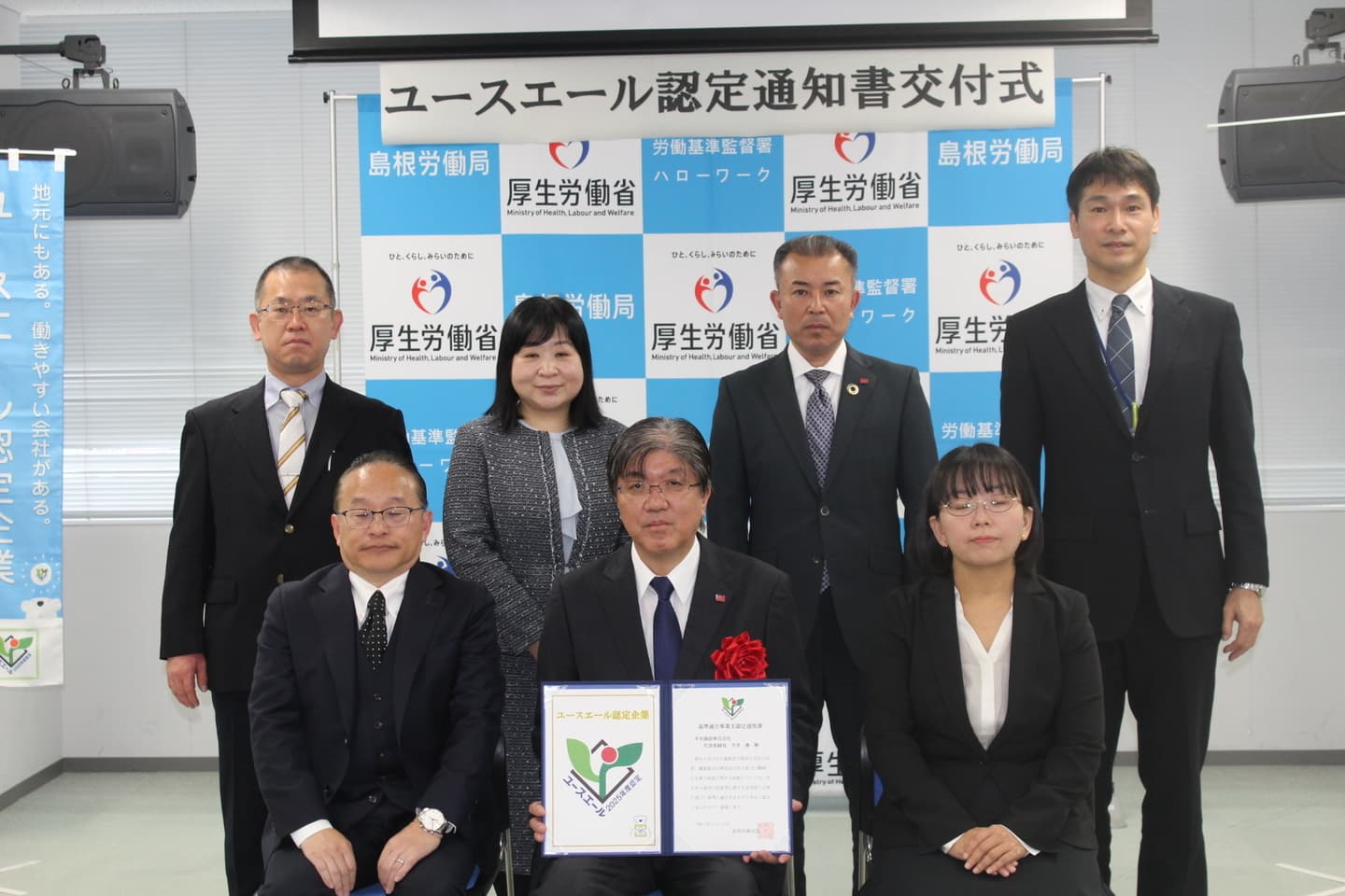ユースエール認定企業は、島根県内で60社の認定を受け、安来市内では弊社が初の認定企業となります。